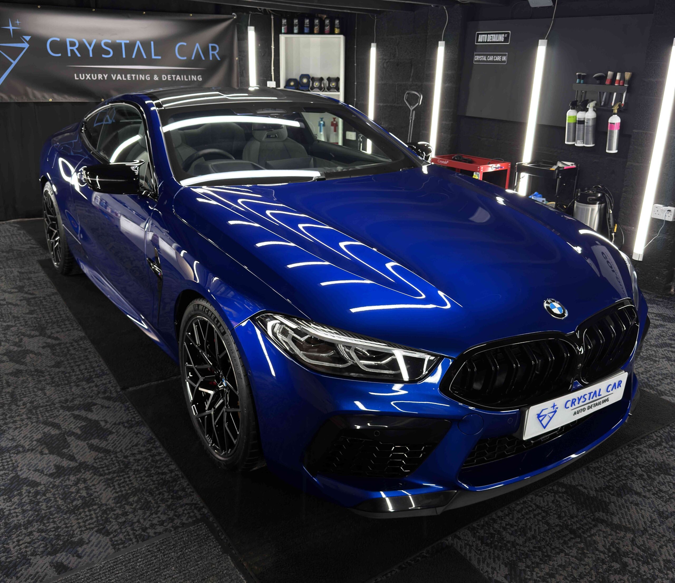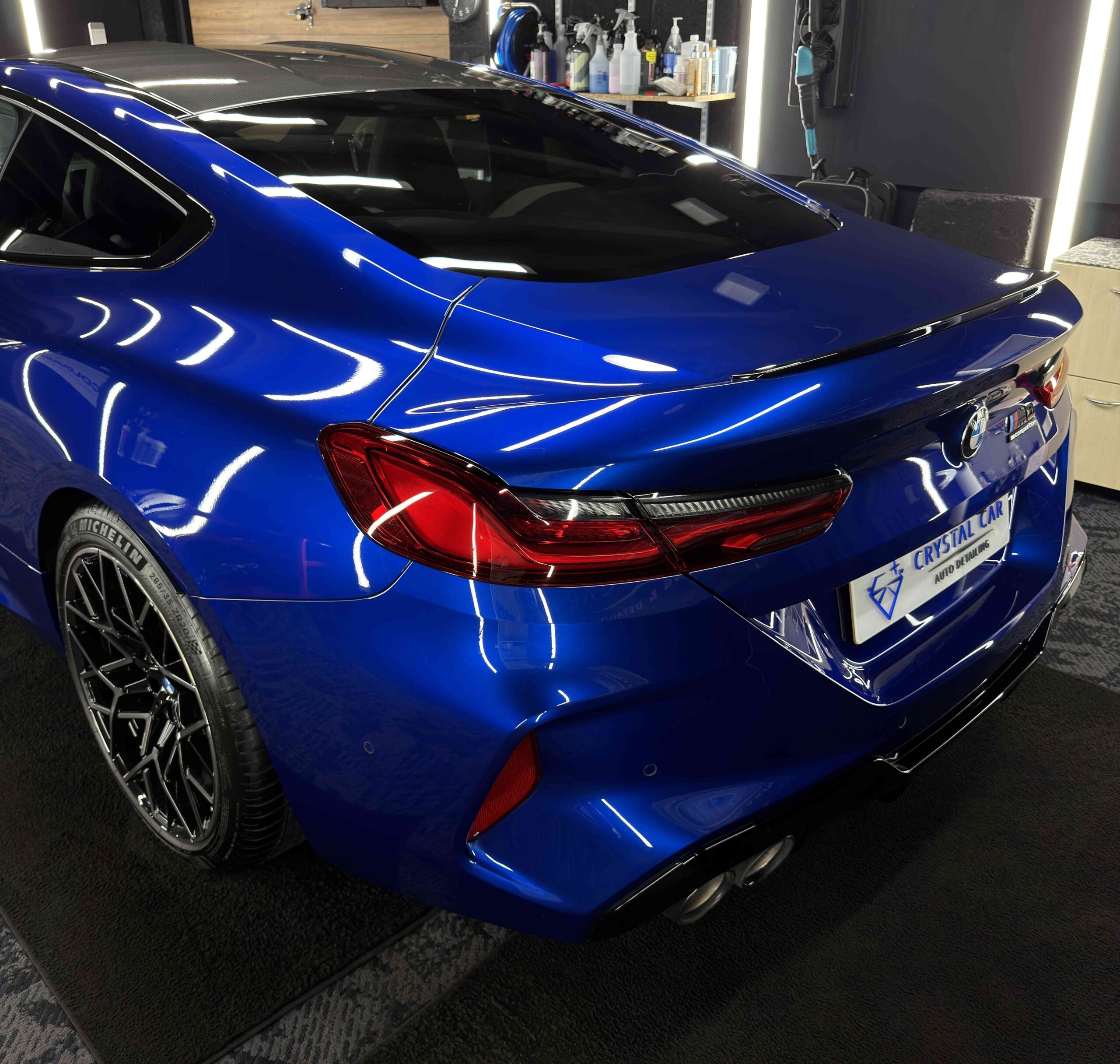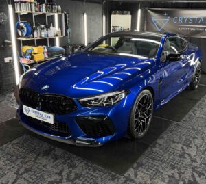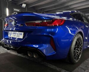 The BMW M8 comp’s sleek and metallic paint now hold a mirror like finish prepared for a ceramic coat.