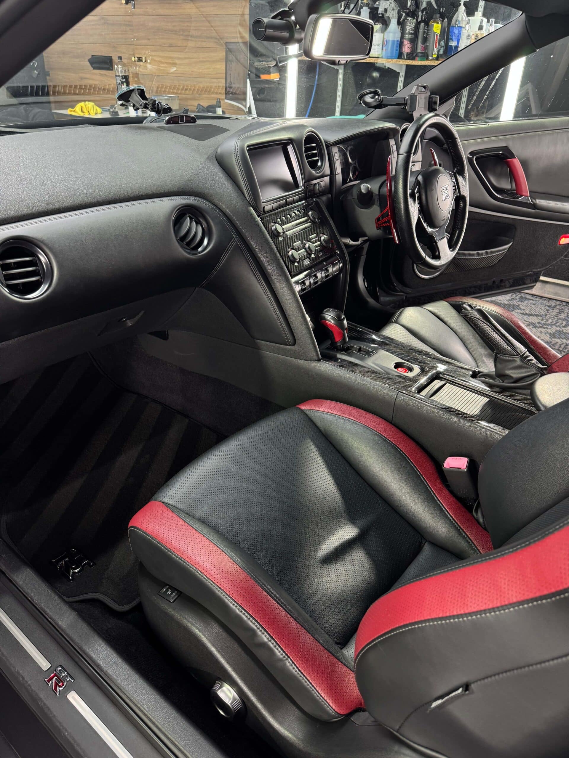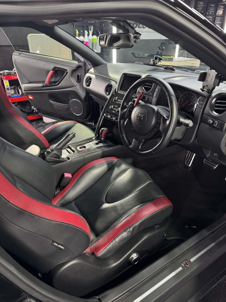 The aim was not simply to clean, but to restore the cabin to a refined, factory-fresh standard consistent with the GT-R’s performance pedigree.